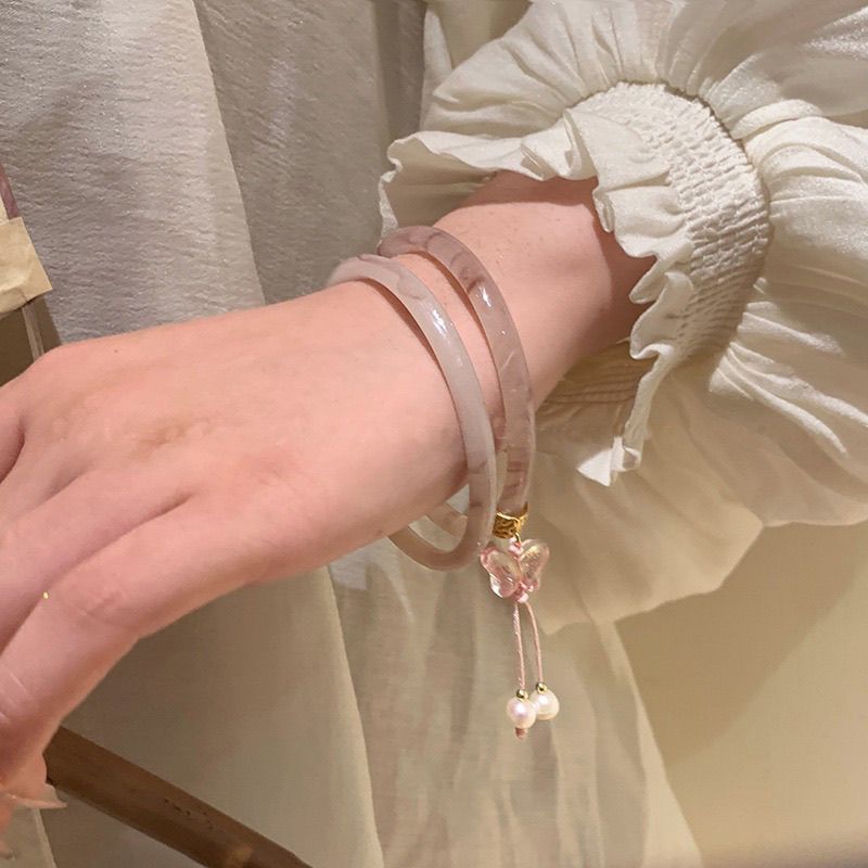 One-Step-At-A-Time Glass Imitation Jade Jingle Bracelet, Ten-Mile Peach Blossom Ancient Style Accessory, Same Style Bracelet as Little Red Book Best Friend