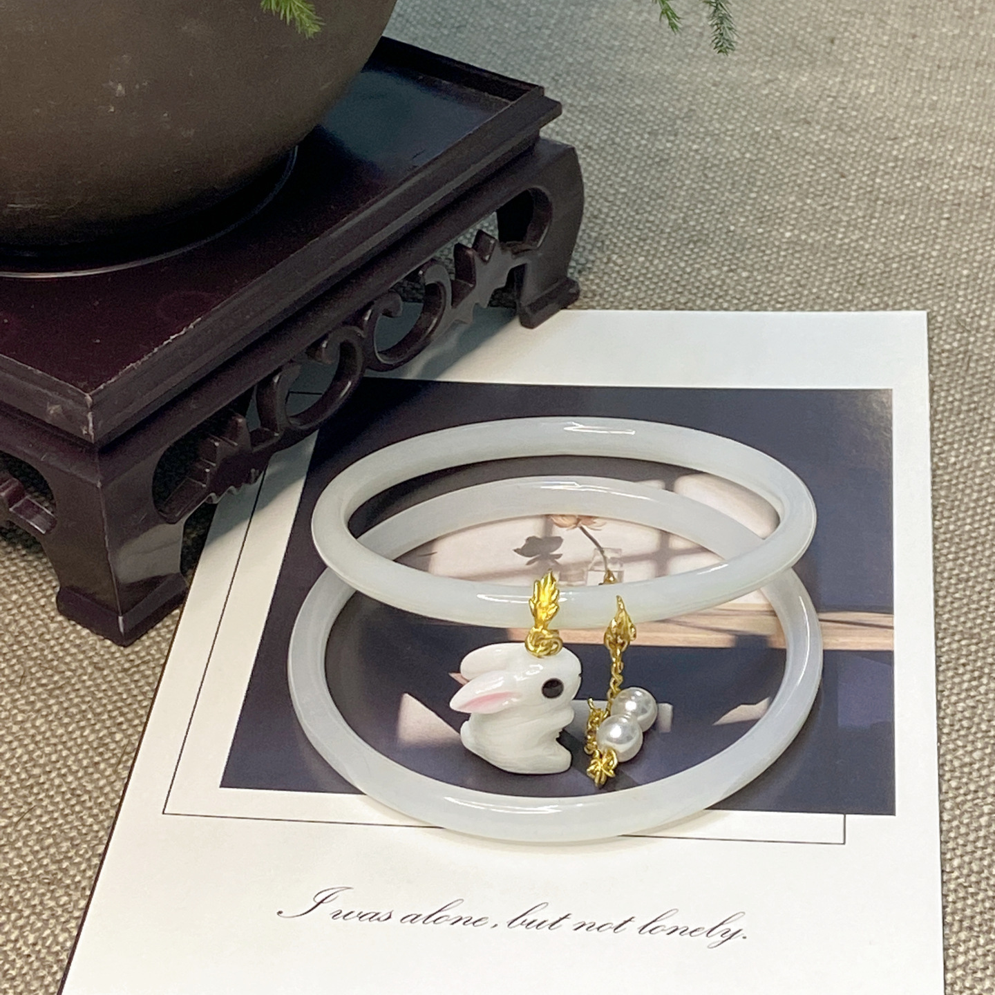 Glass Thin Imitation Jade Bracelet Jade Rabbit Holding Blessings Step by Step Jingle Bracelet Manufacturer Wholesale Scenic Spot Hot Selling Jewelry