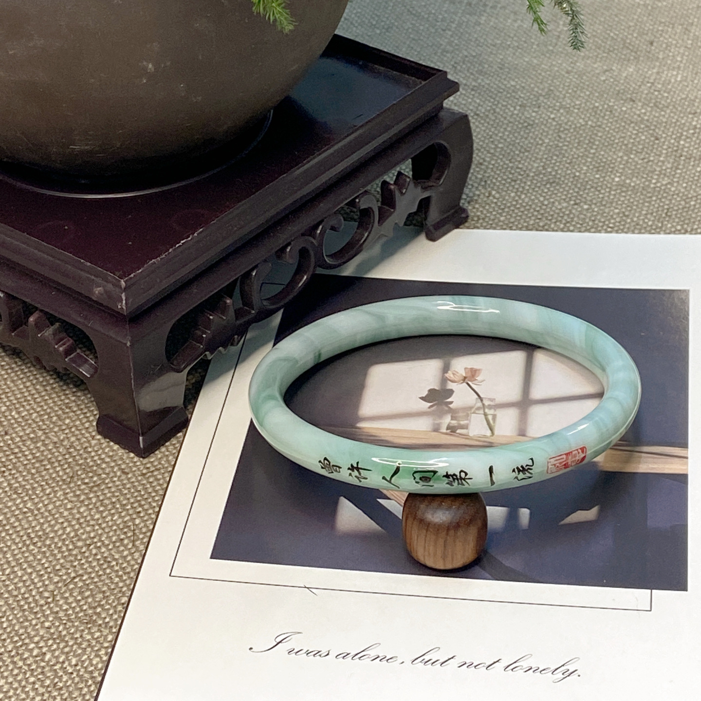 Glass Imitation Jade Thick Round Bar Bracelet with Blue Water and Green Mountains, One Step at a Time, Jingling Bracelet, Bestie Female Bracelet, Same Style as Xiaohongshu