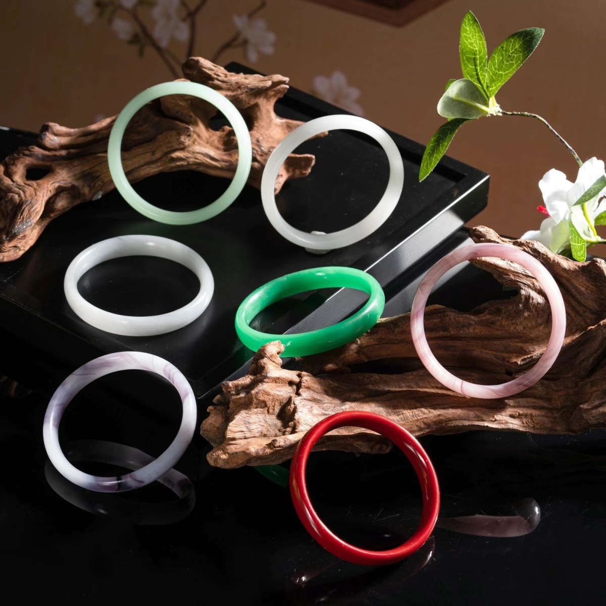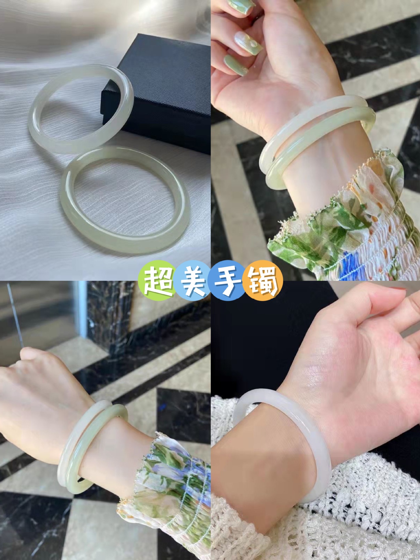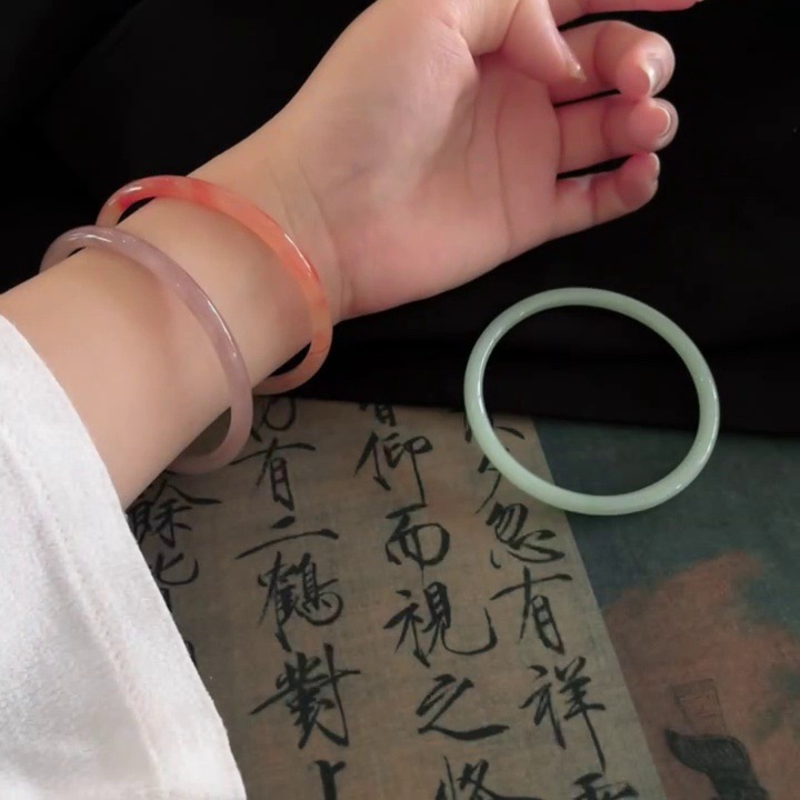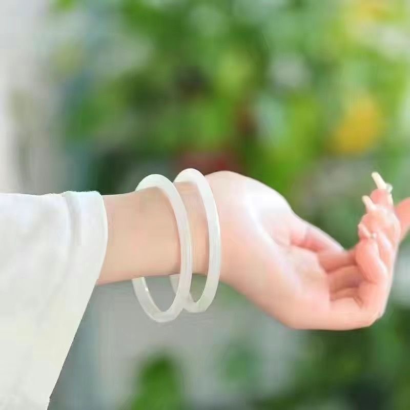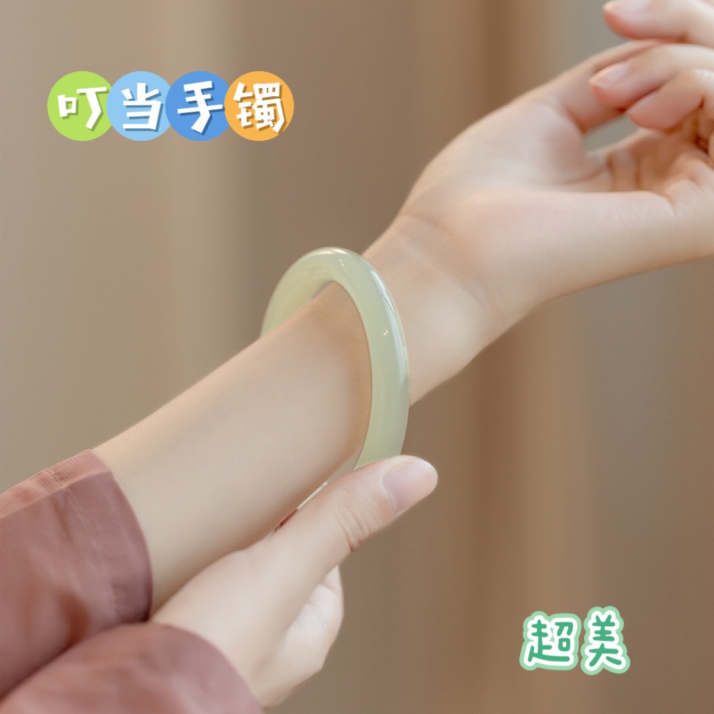 Glass Imitation Jade Coarse Round Strip Super Beautiful Jingle Bracelet One Step Jingle Bracelet Girlfriend Bracelet Little Red Book Same Style