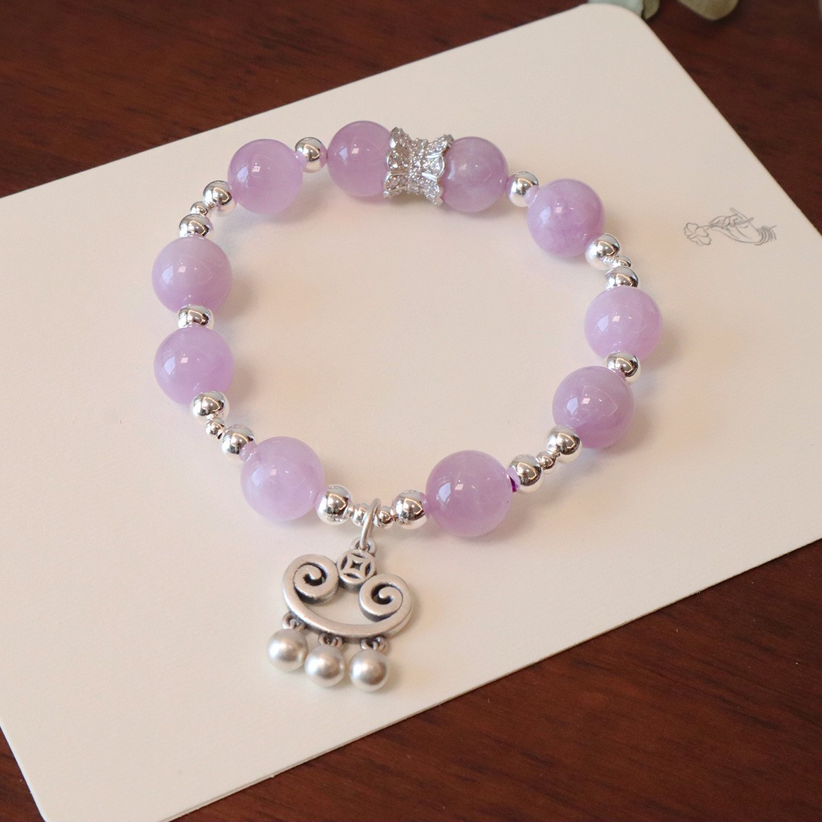 S925 Pure Silver Fortune Lock Natural Purple Lithium Glory Beaded Bracelet Women's Design Sense New Chinese Style Retro High-end Exquisite National Style