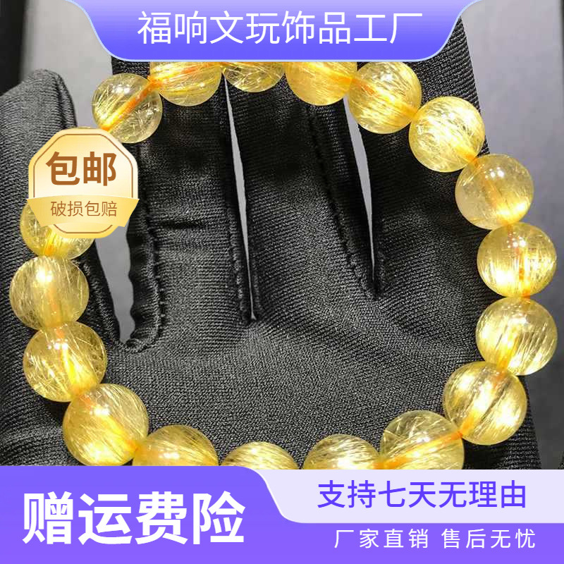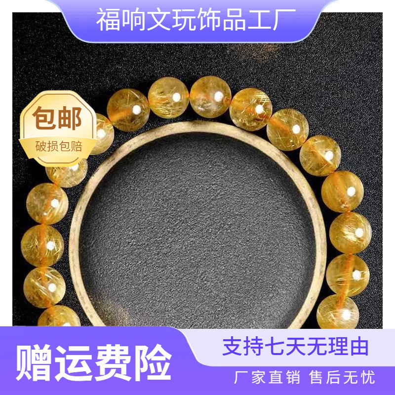 Source Venus Hair Crystal Bracelet Natural Brazilian Old Mine Golden Hair Crystal Bracelet for Men and Women Titanium Crystal Full Dense Smooth Hair Crystal Yellow