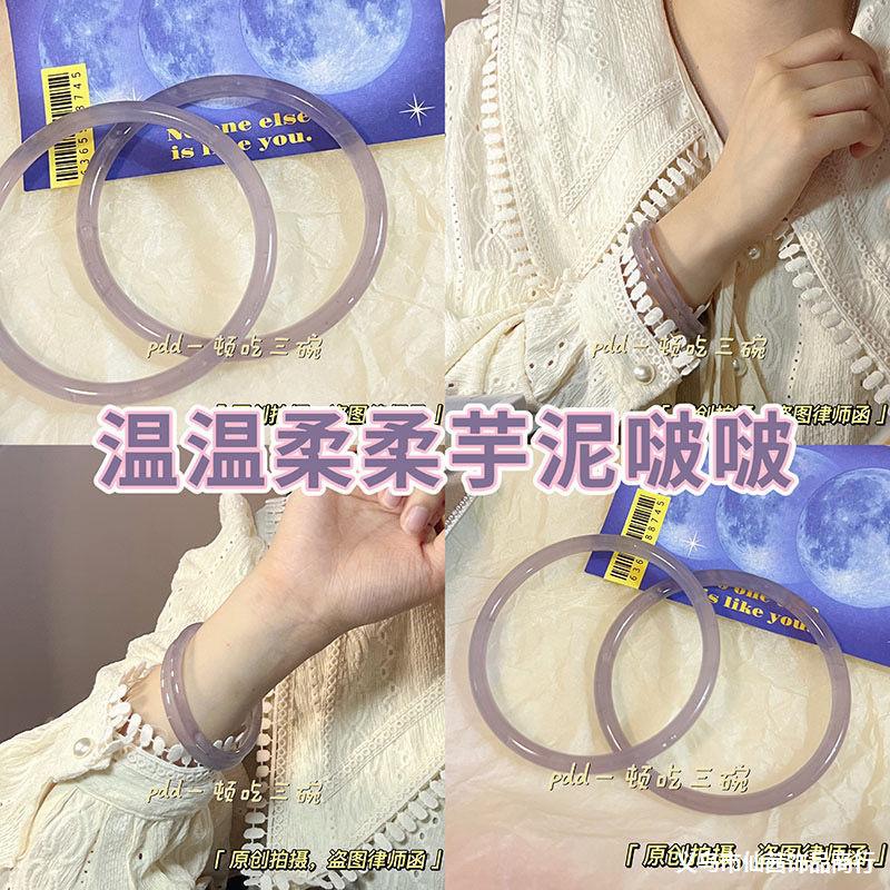 Taro Paste Pop-Pop Thin Strip Bracelet Jingle Bracelet That Makes a Sound with Every Step Glass Imitation Jade Bracelet Purple Bracelet Jewelry Accessories