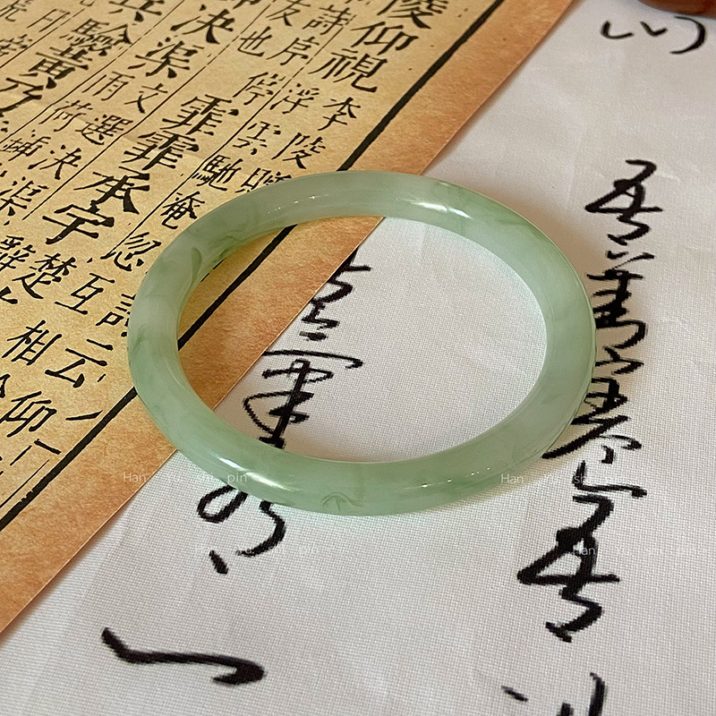 Little Red Book with New Chinese Style Imitation Jade Glass Jingle Bracelet One Step Mint Green Bracelet Simple Bracelet
