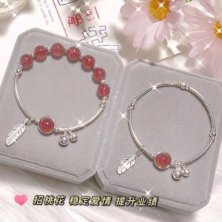 Strawberry Crystal Cute Bracelet for Women, Attracts Love, Simple Couple Love Sweet Jewelry, Bell Ringing Feather Bracelet