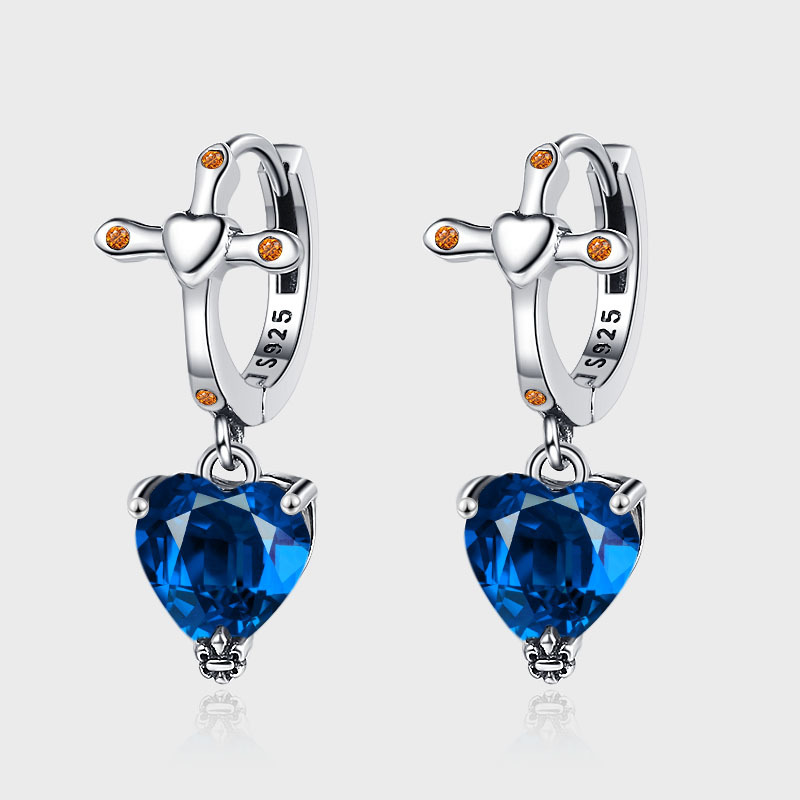 S925 Sterling Silver Cross Love Ear Buckle Blue Heart Shaped Zircon Horror Halloween Earrings Hoop Earrings Earrings
