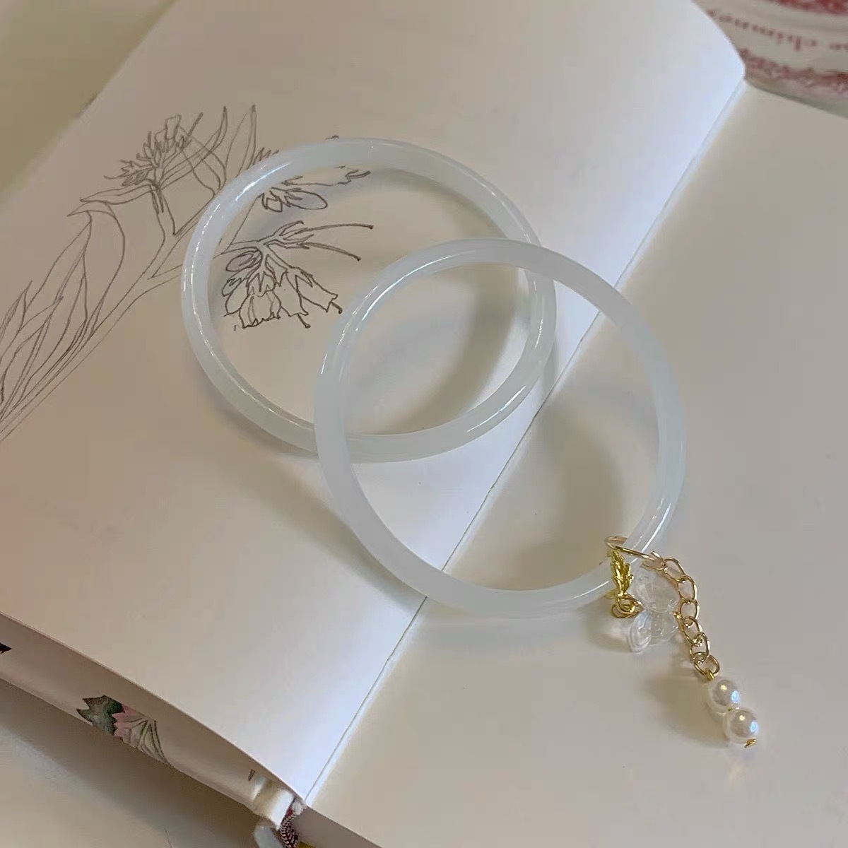 One Step at a Time, the Bracelet Sounds Like Chimes, Imitating Chalcedony, with a Unique and Trendy Style, Featuring a Butterfly Ring and a Peace Charm in a Chinese Style