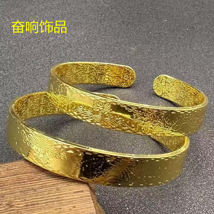 Classic Retro Sand Gold "Dragon and Phoenix Playing with Pearls" Women's Bracelet with Exquisite Carving Craftsmanship to Meet Daily Leisure and Other Scenes