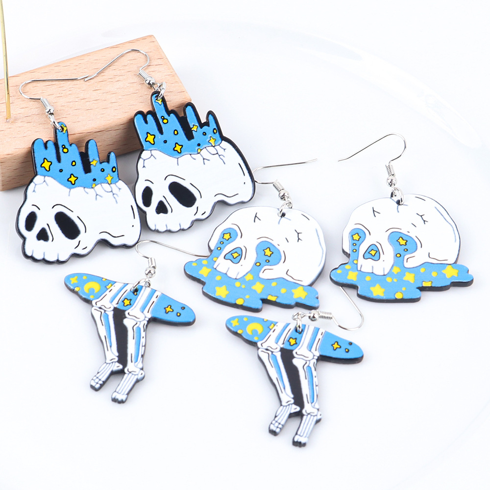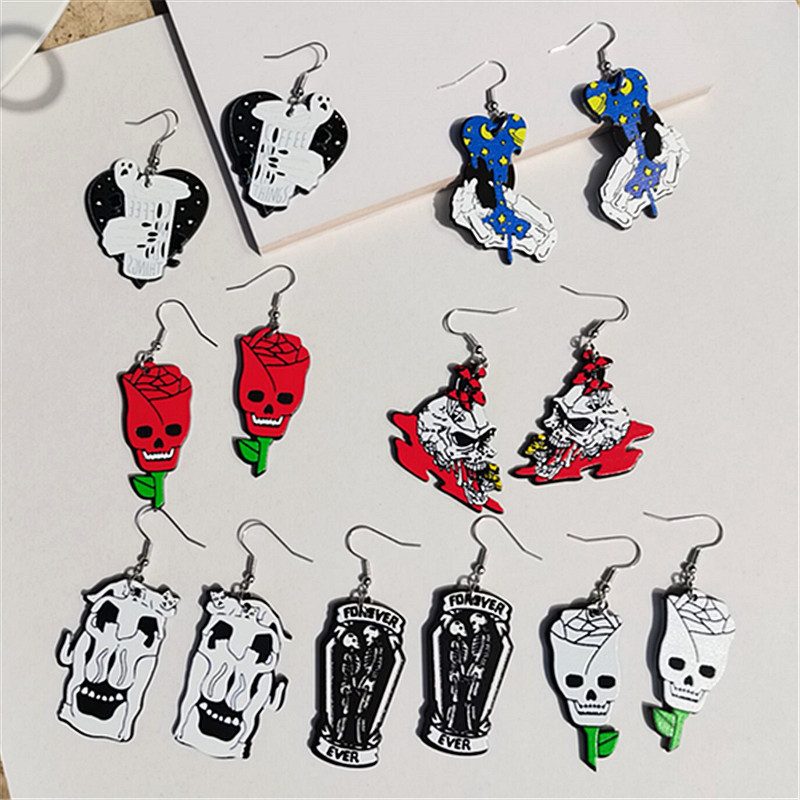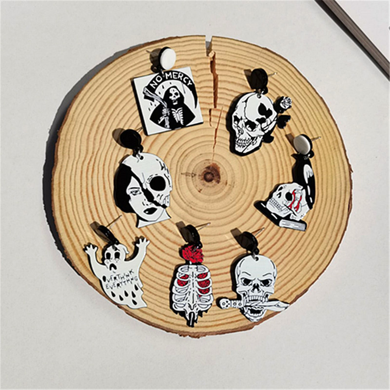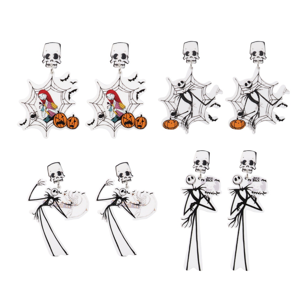 Halloween two-dimensional European and American horror personality creative skull devil ghost universe cat acrylic earrings
