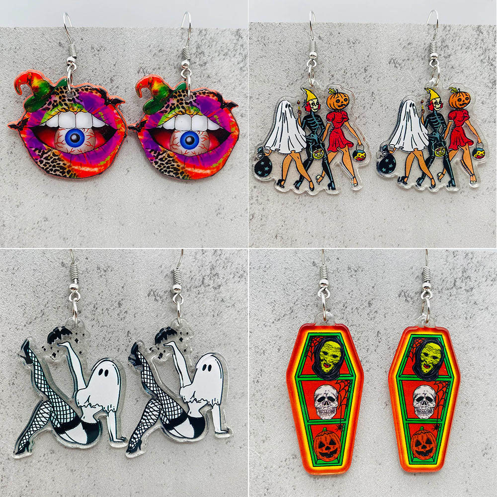 Horror Christmas Halloween jewelry dark sweet cool witch ghost pumpkin acrylic earrings European and American cross-border ear