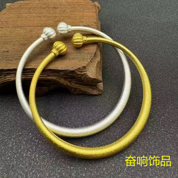 Nezha Qiankun Circle Inheritance Ancient Method Plain Circle Bauhinia Flower Pattern Curled Grass Pattern Solid Bracelet Palace