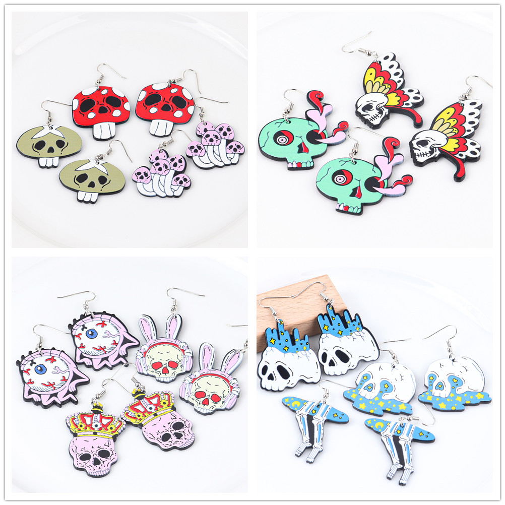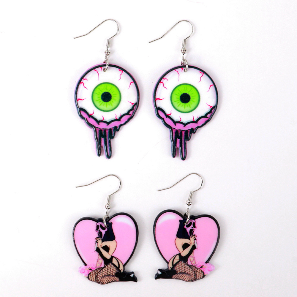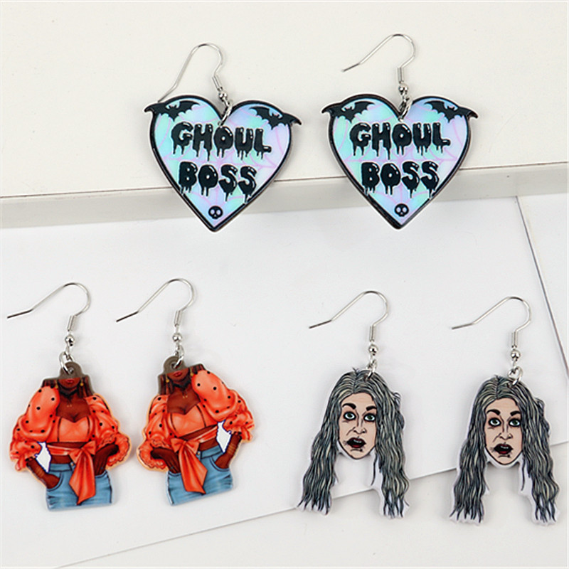 European and American Halloween Horror Movie Funny Earrings Earrings Night Magic Evil Head Acrylic Printed Earrings