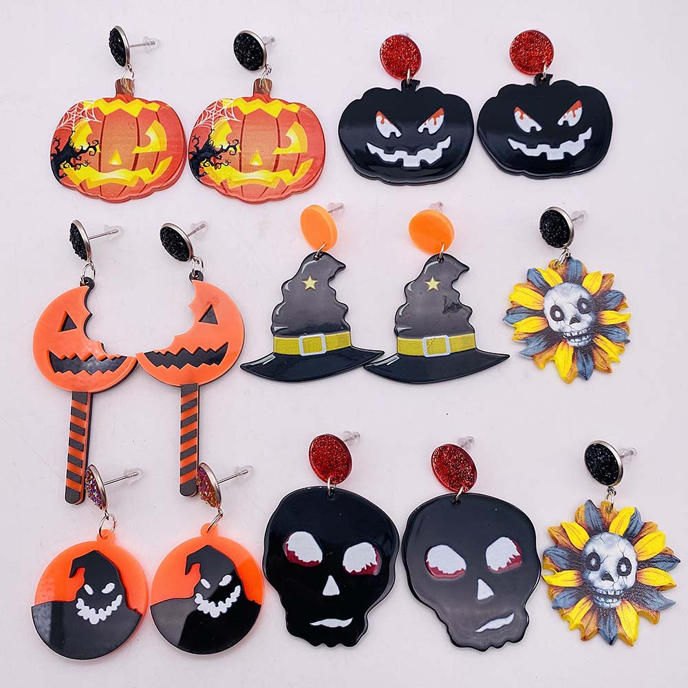 European and American Halloween horror Ghost skull spider earrings funny pumpkin acrylic holiday earrings Thanksgiving Day
