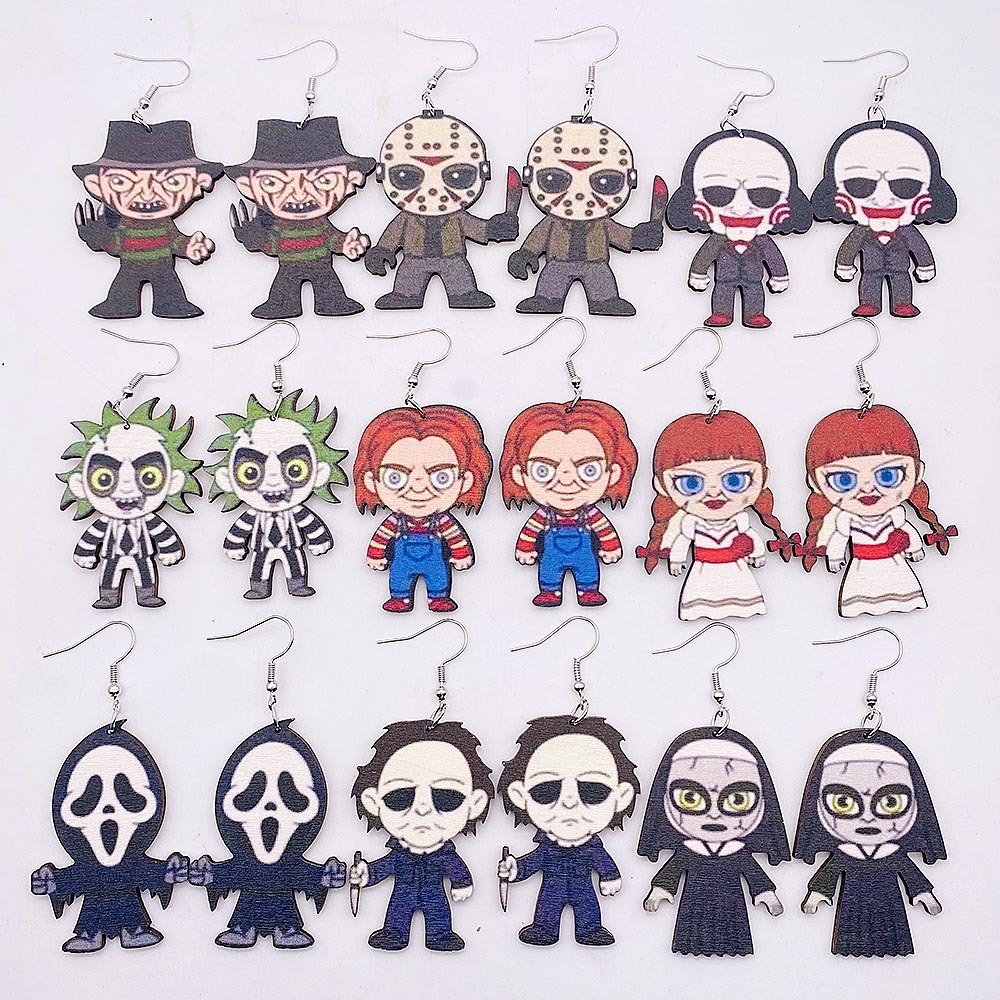 Cross-border Halloween wooden earrings European and American horror movie characters exaggerated holiday earrings Amazon jewelry