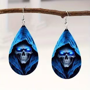 Cross-Border Hot Selling Mysterious Skull Horror Halloween Accessories Acrylic Flat Earrings Retro Design Earrings