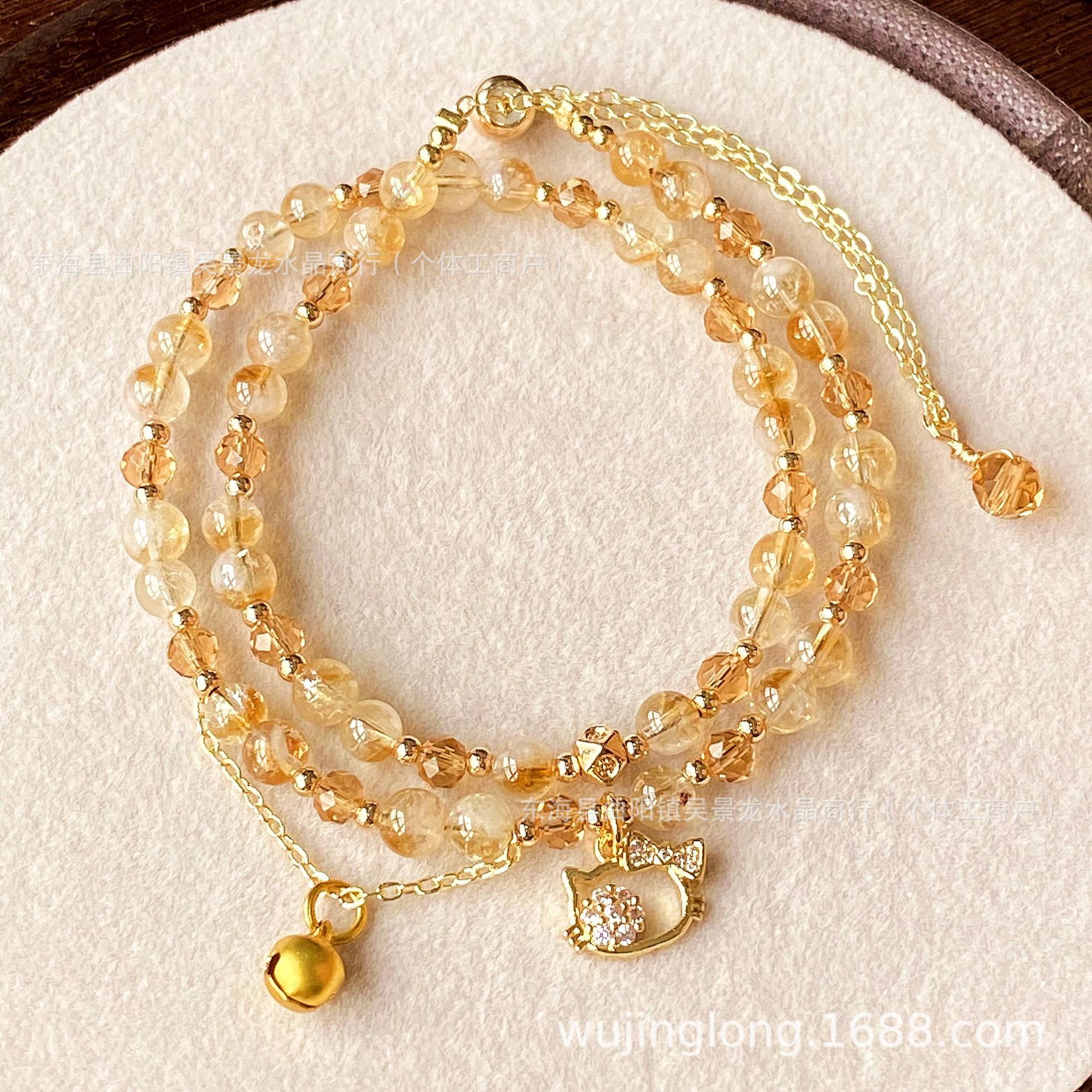 One Step at a Time ~ Bell Double Circle Double Layer Yellow Tower Crystal Natural Citrine Bracelet Bracelet Female Beaded Bestie Bracelet