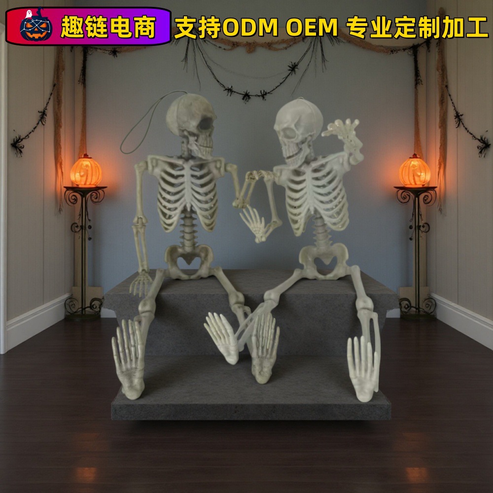 Cross-Border Shipping Available: Adjustable Jointed Halloween Horror Ornament Pumpkin Human Skeleton 46cm Skull