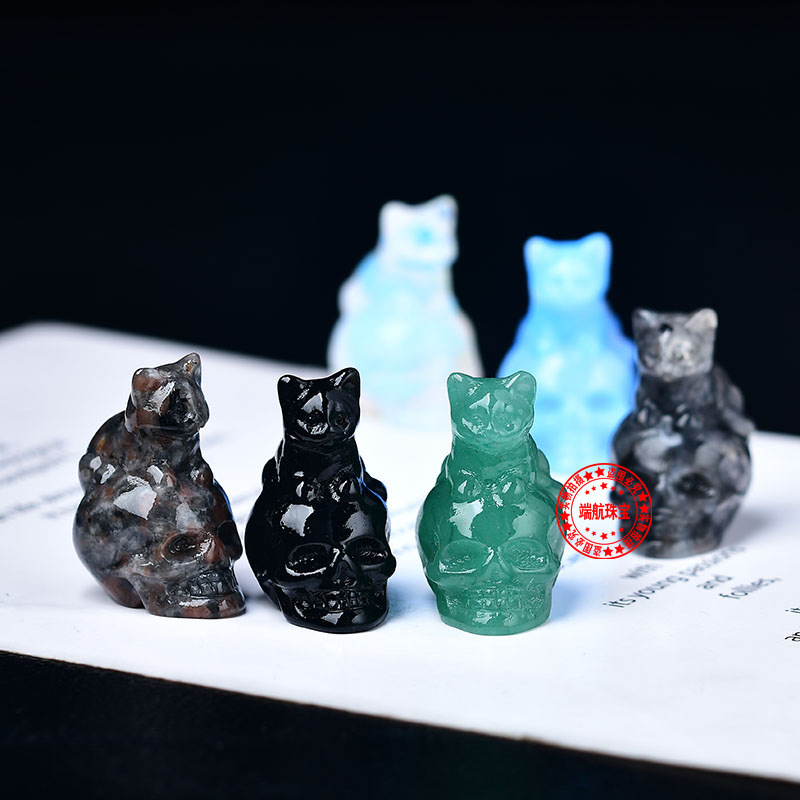 Cross-border Hot Sale Natural Crystal Skull Head Cat Carving Ghost Head Halloween Horror Crafts Ornaments