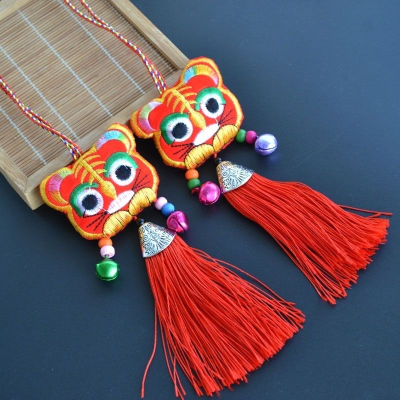 Dragon Boat Festival traditional folk tiger head safe lock sachet children baby neck long rope sachet pendant stall selling