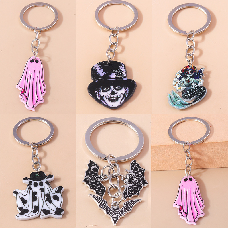 New Halloween Cartoon Ghost Bat Keychain Dark Style Horror Character Key Ring Pendant