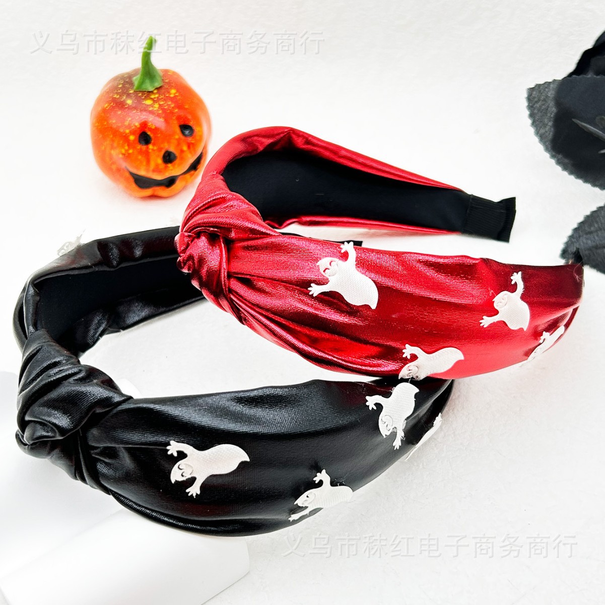 Amazon Halloween Leather Knotted Wide Brim Headband Horror White Ghost Headband Hair Accessories Wholesale