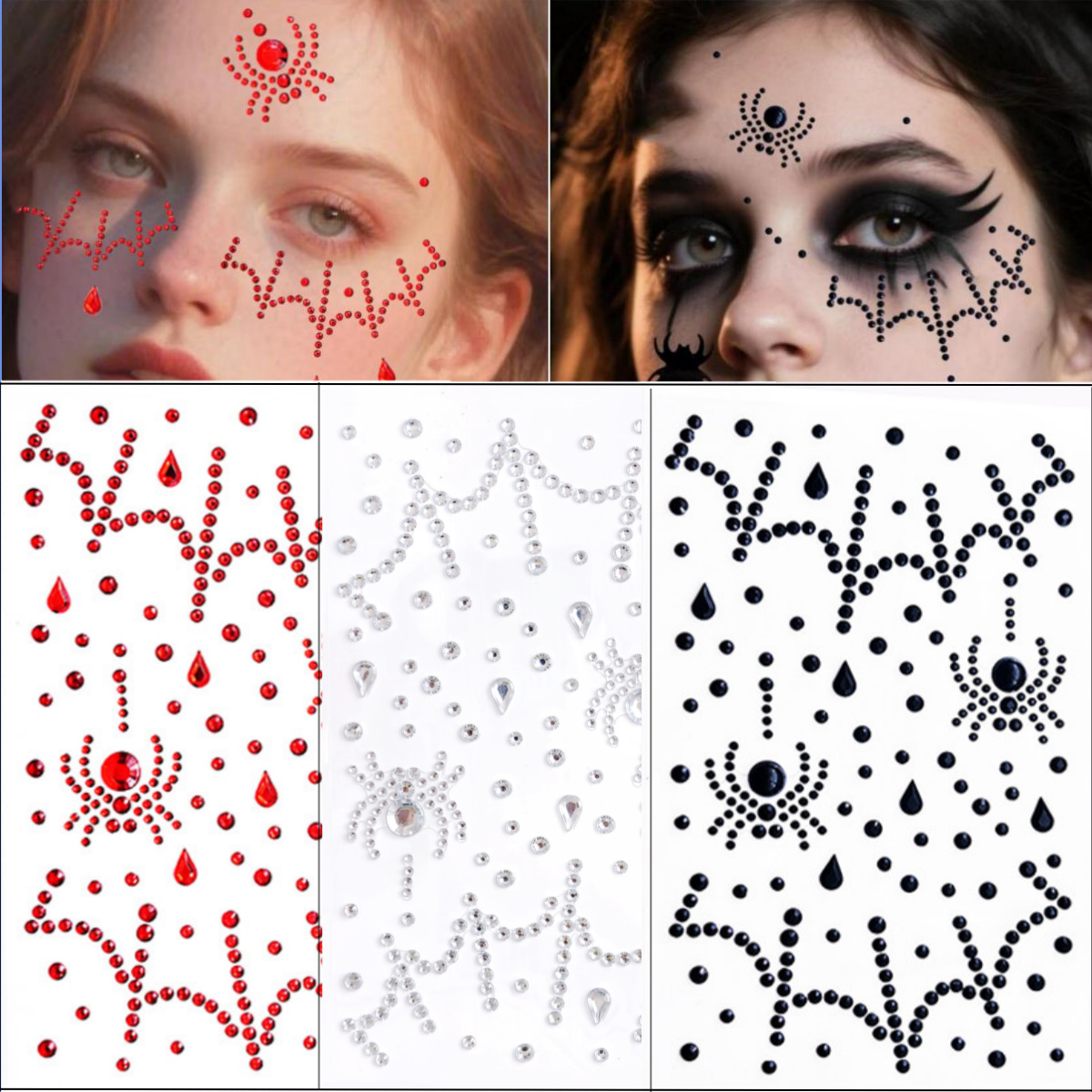 Halloween Face Stickers with Black and Red Diamonds, Cos Crushed Diamonds, Sparkling Diamonds, Ice Cubes, Horror Artificial Plasma Scar Stickers, Holiday