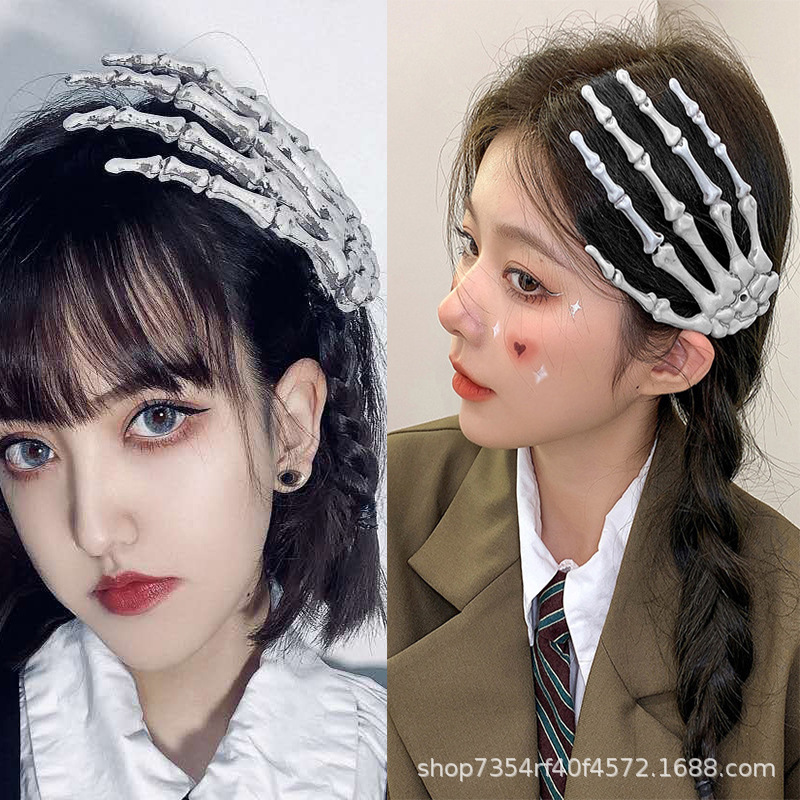 Cross-border Skull Hand Claw Hairpin Halloween Funny Headwear Women's Dark Hand Skeleton Duckbill Clip Horror Hairpin