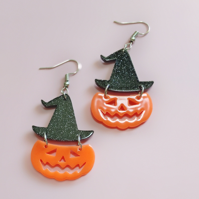 Cross-border Hot Retro Halloween Horror Funny Pumpkin Earrings Demon Earrings Acrylic Party Earrings Europe and America
