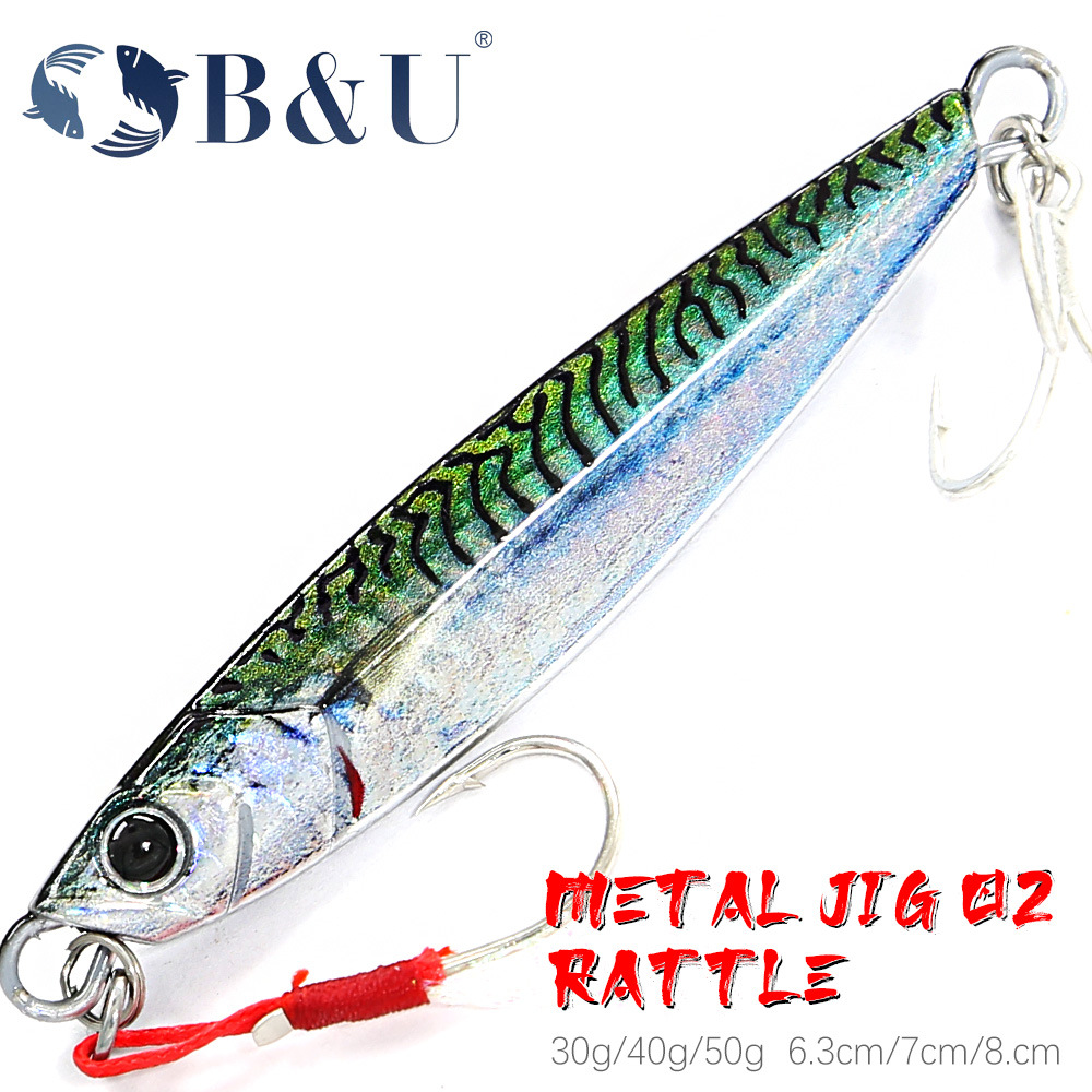 B & U sea fishing luya iron plate with ring bead long cast mackerel bait Spanish mackerel hard bait seawater metal bait