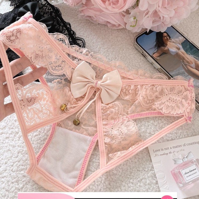 It Makes a Sound When You Move ~ Sexy and Interesting Lace Open-Crotch Cut Out Bow Panties for Girls Pure Desire Low-Waist Briefs Batch