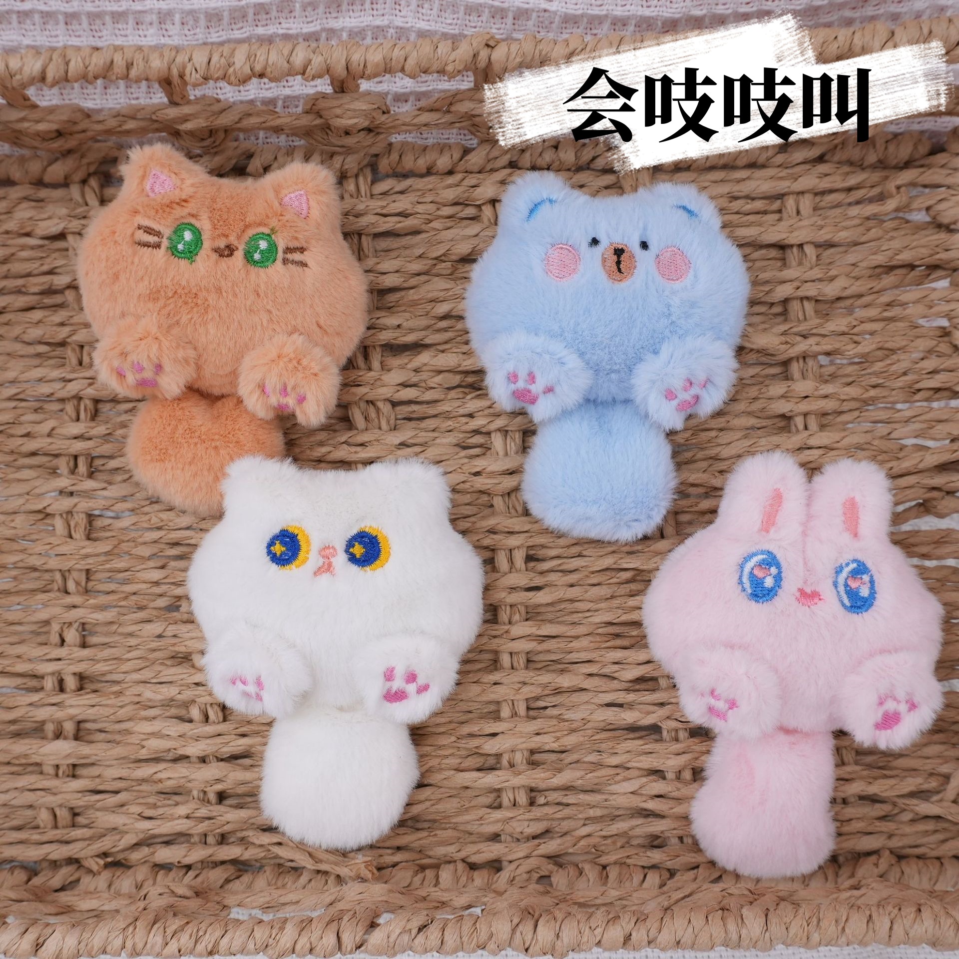 Cute Squeaky Big-Tailed Cat Plush Pendant Bunny Bear Kitten Bag Doll Squeaks
