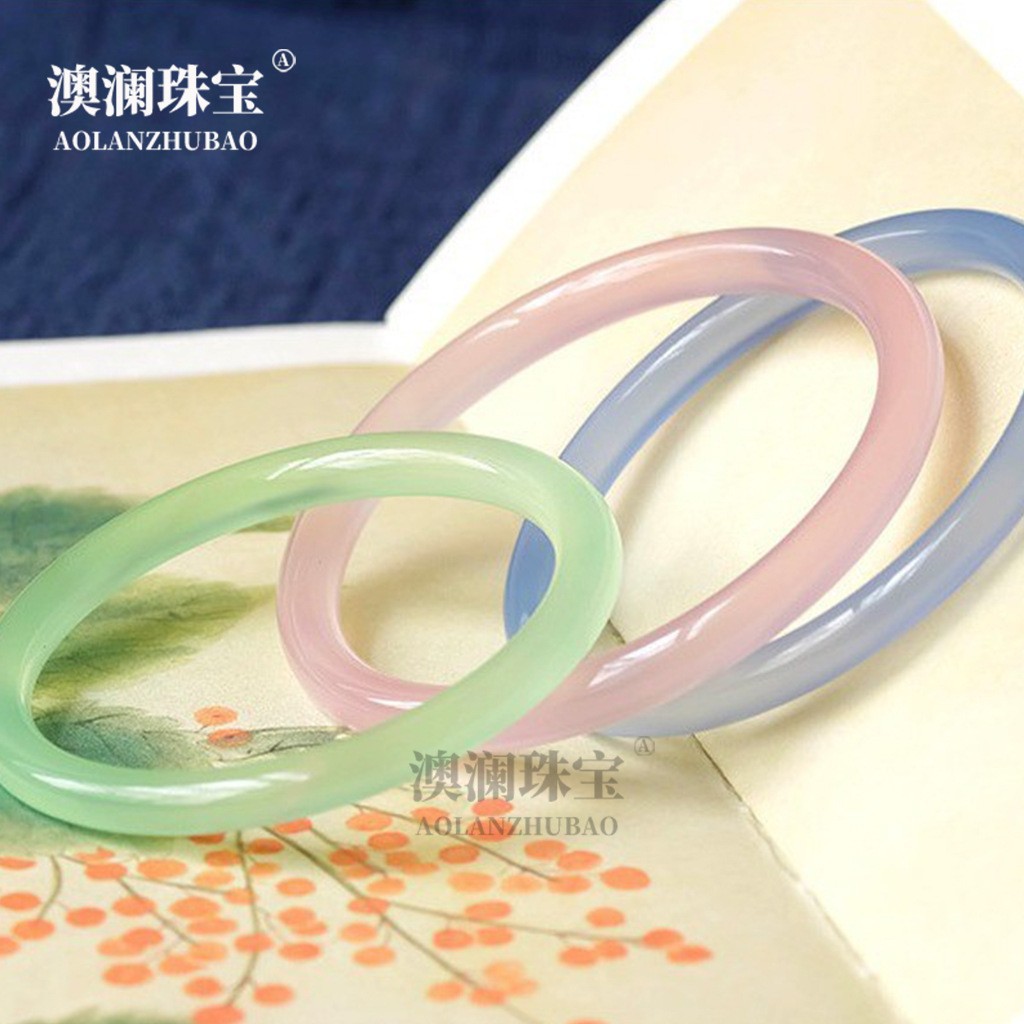 Natural Agate Chalcedony Jingle Bracelet, One Step at a Time, Half Mountain and Half Water, Women's Thin Round Bar, Gift for Girlfriend and Best Friend