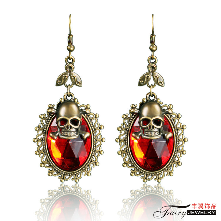 Cross-border Halloween Earrings European and American Horror Funny Ghost Demon Retro Skull Ghost Head Crystal Yiwu Earrings Female