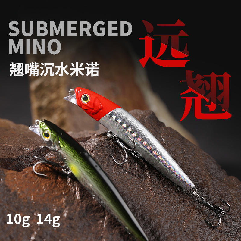 Wen ray far warped lip-free bait far cast heavy submerged mino pencil with ring bead lip plate cocked bass hard bait