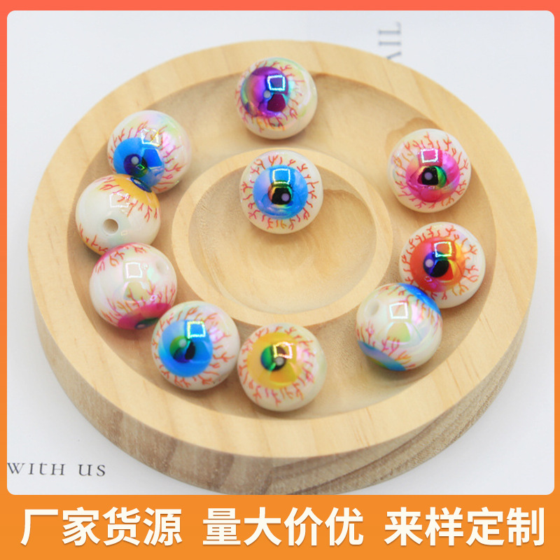 New Cross-Border 16mm Halloween Personalized Uv-Plated Colorful Horror Eyeball Beads DIY Handmade Beads Loose Beads Wholesale