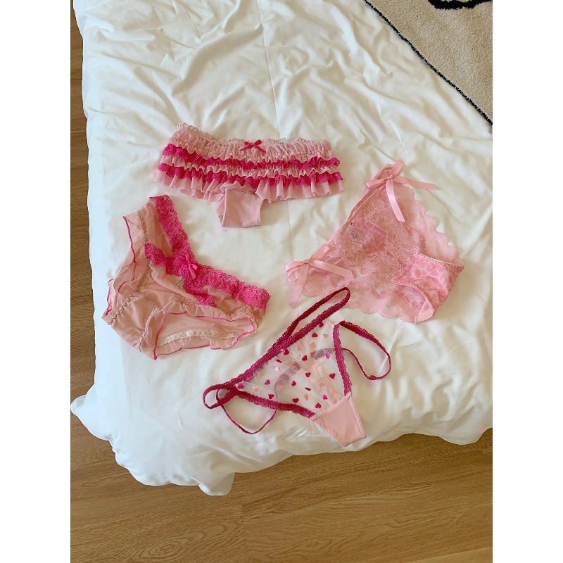 Tokyo Brea Cake ~ Japanese Cute and Sweet Pink Bow Sexy Lace Girl Mid-Low Waist Underwear for Women