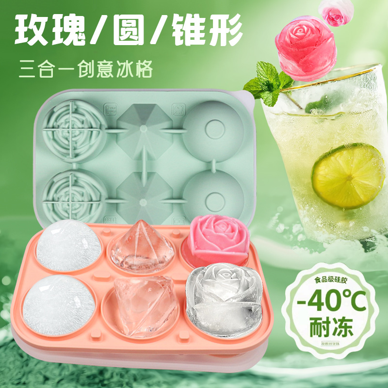 Rose Ice Ball Mold Whiskey Diamond Ice Tray Ice Cube Food Grade Household Ice Making Box Quick Freezing Silicone