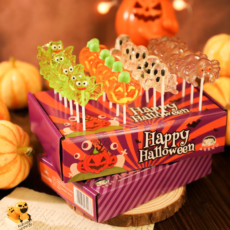 Halloween Candy Cartoon Ghost Pumpkin Head Crystal Lollipop Wholesale High Color Value Snacks Cross Border Factory Wholesale