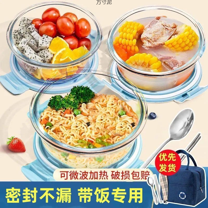 Glass Lunch Box Made of Borosilicate Material, Heat-Resistant Round Bowl, Lunch Box with Lid for Office Workers, Fruit Lunch Box, Crisper Supply Chain