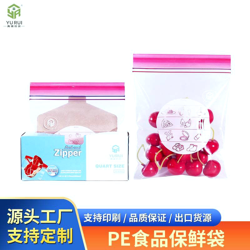 Food grade fresh-keeping bag refrigerator refrigerated fruit and vegetable packing bag thickened transparent double-rib pe self-sealing bag