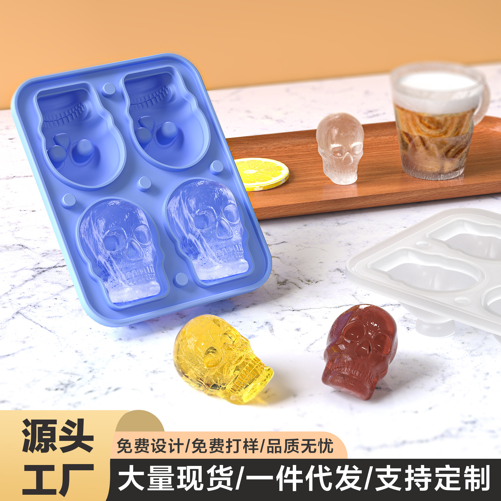 Food-Grade Skull Ice Mold Whiskey Household Frozen Ice Cube Ice Ball Halloween Silicone Ice Tray Artifact