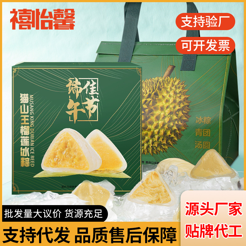 Customized Dragon Boat Festival Durian Ice Lotus Durian Pulp Ice Zongzi Crystal Ice Skin Zongzi Gift Box Durian Ice Cream Wholesale