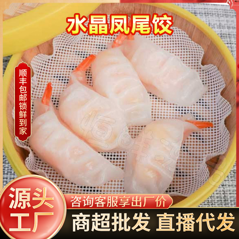 Cantonese-Style Crystal Phoenix Tail Shrimp Dumplings Frozen Quick-Frozen Food Semi-Finished Cantonese-Style Tea House Dim Sum Steamed Shrimp Dumplings Wholesale
