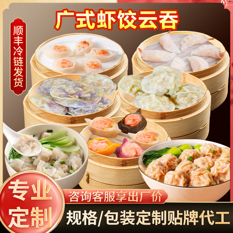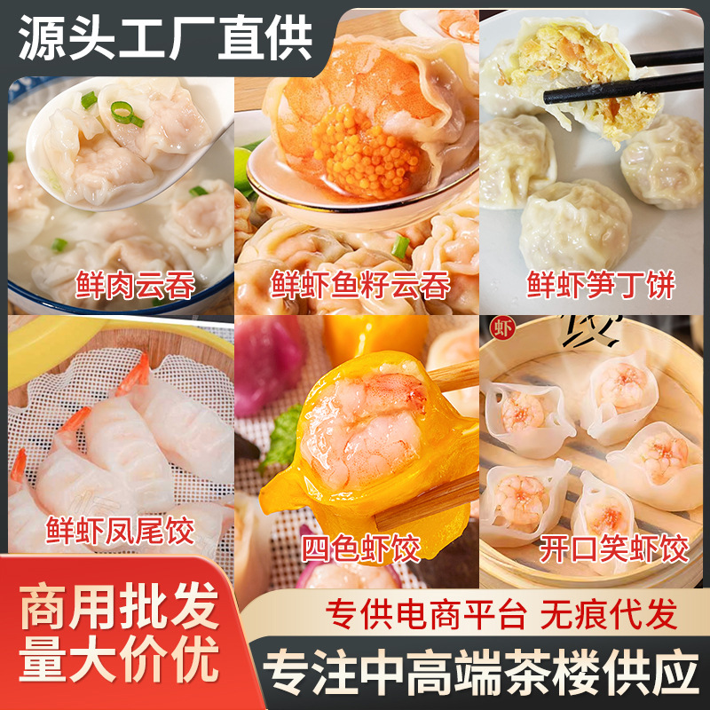 Cantonese-Style Shrimp Dumplings, Cantonese-Style Morning Tea Snacks, Four-Color Open-Smile Crystal Phoenix Tail Shrimp Dumplings, Wonton Breakfast Food Wholesale