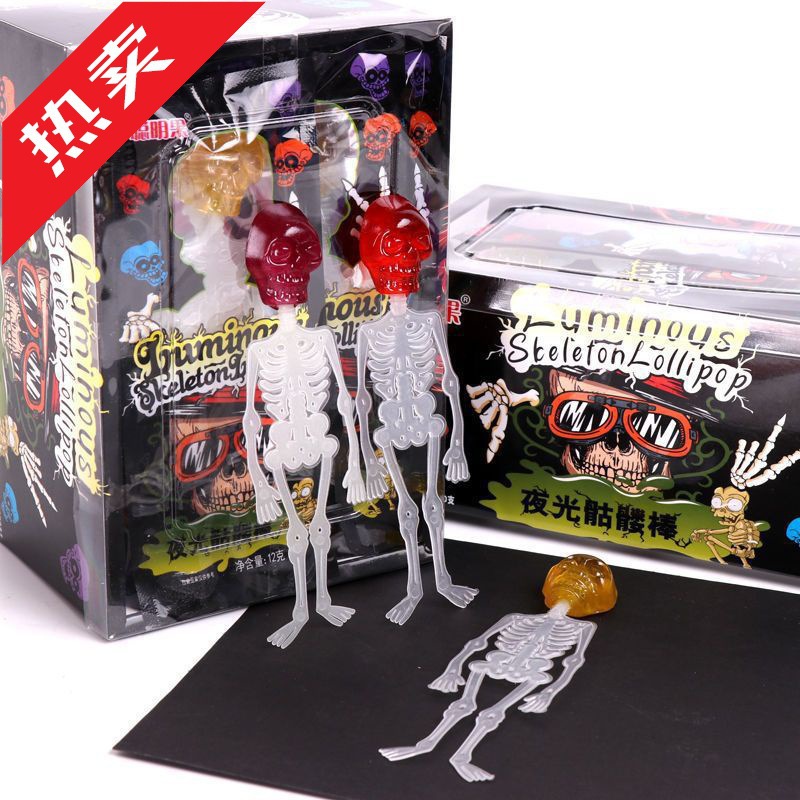 Net red skull luminous spoof candy creative trick wholesale Halloween lollipop fruit flavor hard candy other