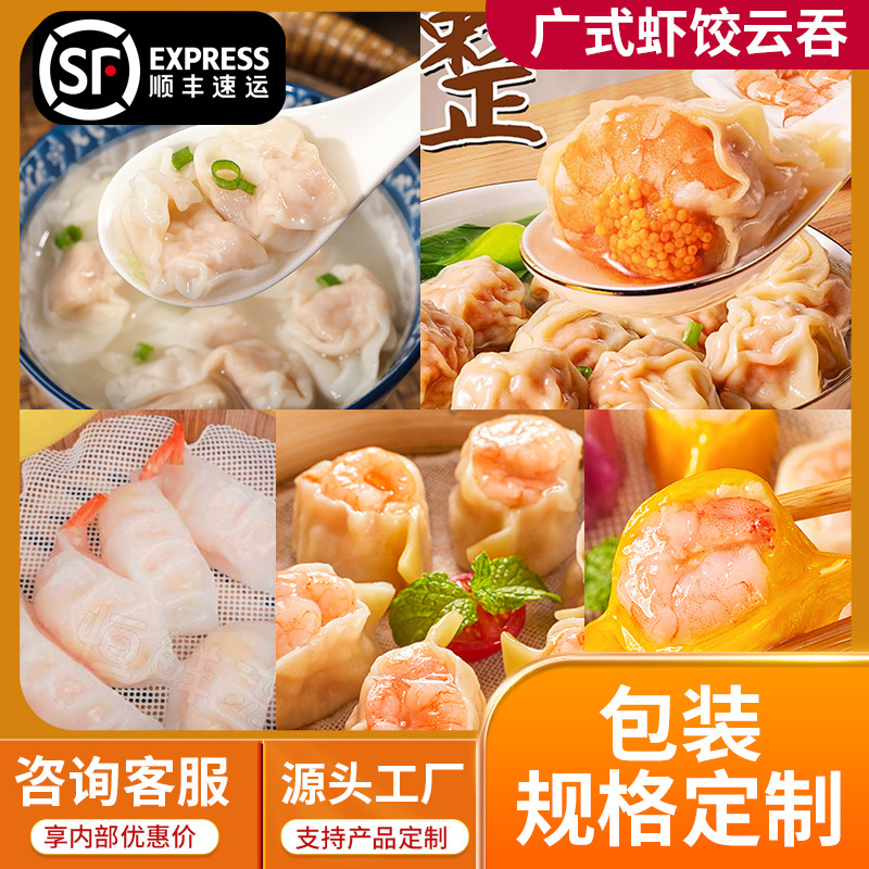 Customized Cantonese-Style Tea House Dim Sum Crystal Phoenix Tail Four-Color Shrimp Dumplings Frozen Quick-Frozen Food Open-Mouthed Smiling Shrimp Dumplings Wonton Batch