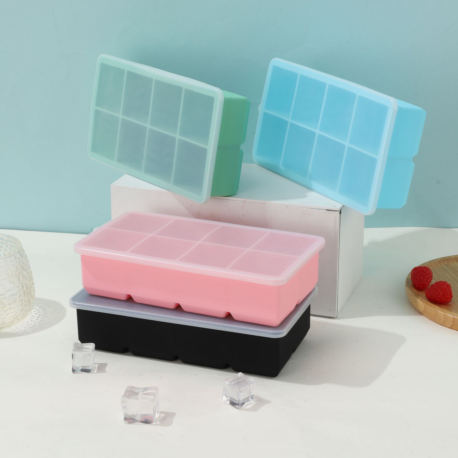 Square 8 Lattice Silicone Ice Cube Creative Ice Cube Mold with Cover Household Ice Box Ice Maker Cube Ice Cube Mold