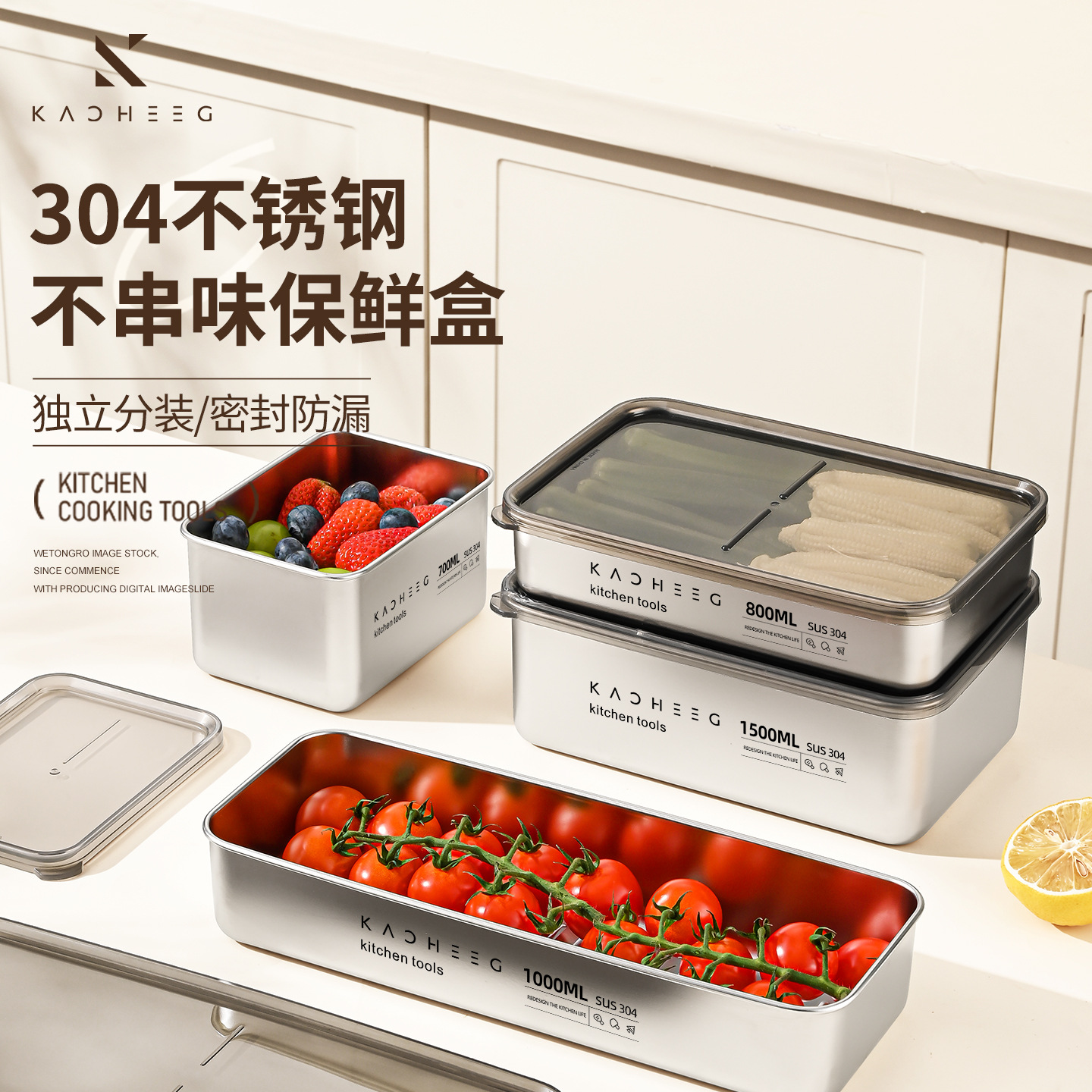 304 Stainless Steel Refrigerator Storage Box Food Grade Stainless Steel Food Preparation Commercial Display Tray Stall Household Crisper