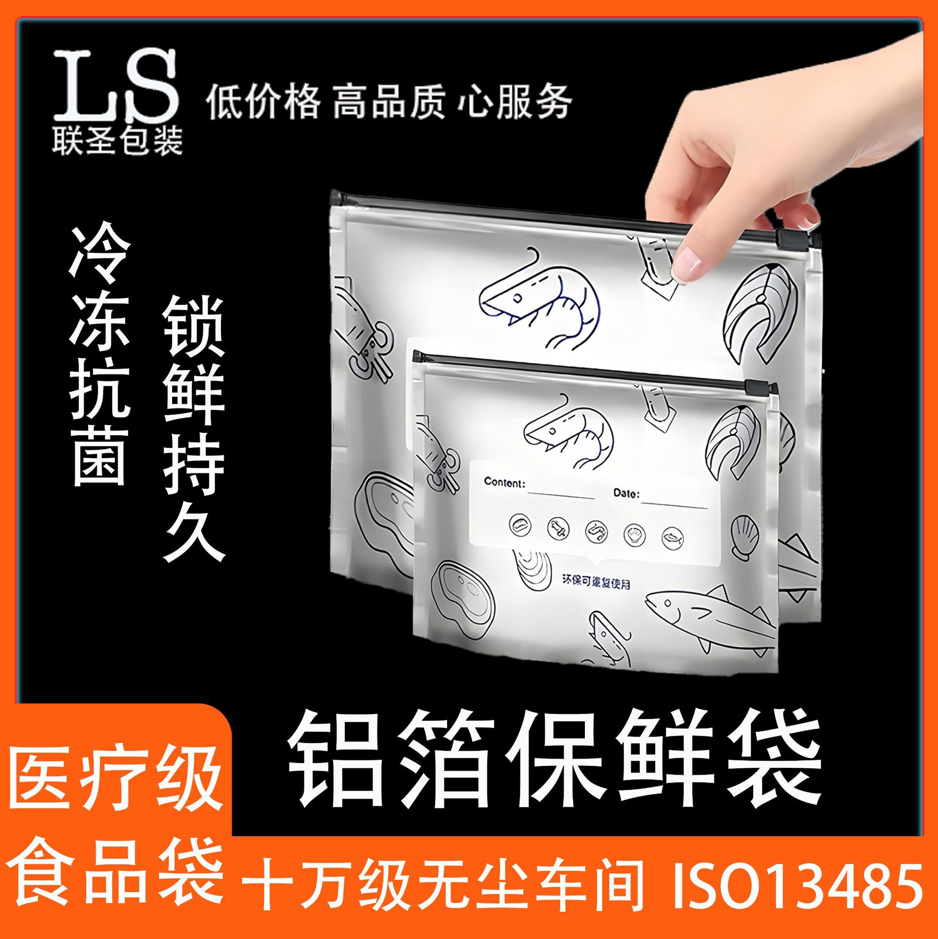 Aluminum Foil Fresh-Keeping Bag Refrigerator Freezer Antibacterial Sealed Bag Ziplock Bag Zipper Food Grade Zipper Packaging Bag