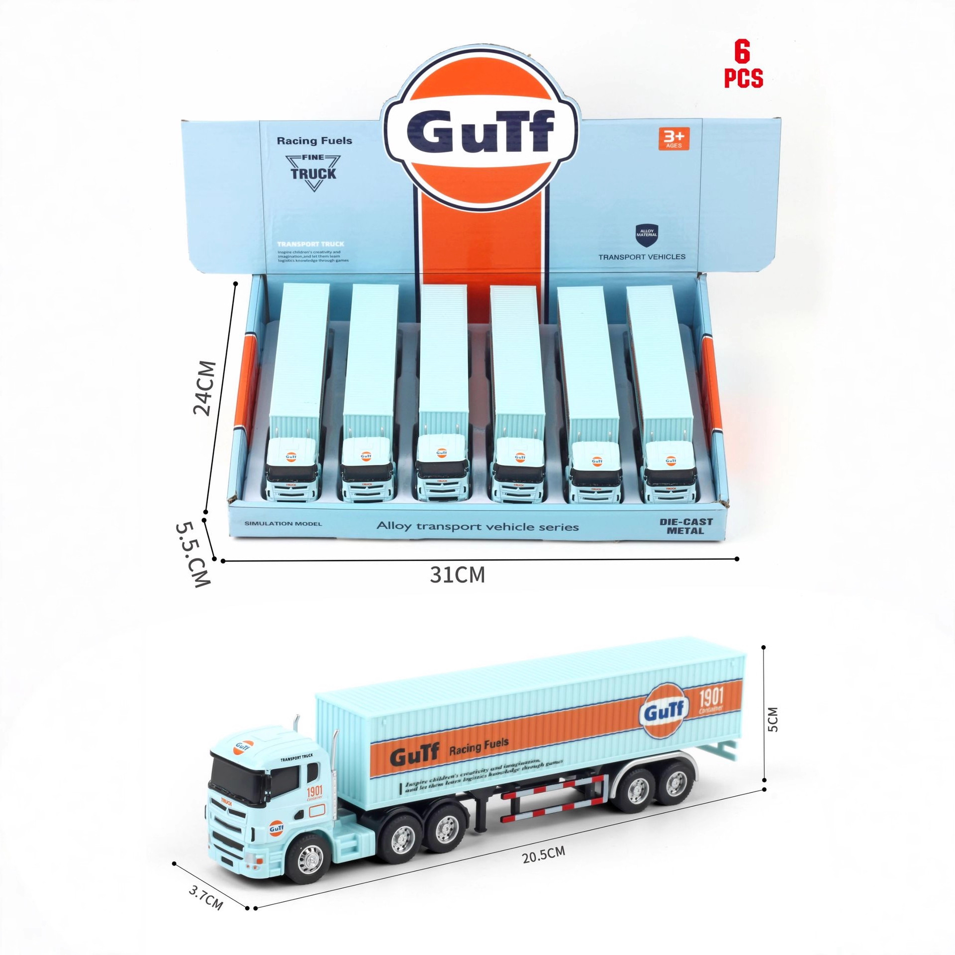 (Display Box) Simulation 1:64 Small Trailer Gulf Version Container Truck Alloy Car Model Ornaments Toy Car Dropshipping